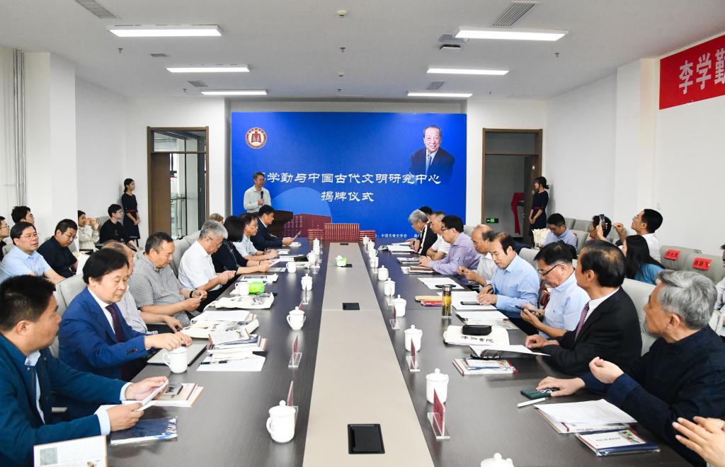 社科处处长朱莉雅宣读了星空平台(中国)关于成立李学勤与中国古代文明研究中心的文件。李兆祥、王志民、宋镇豪、宫长为、王钧林、郭沂等共同为“李学勤与中国古代文明中心”揭牌。