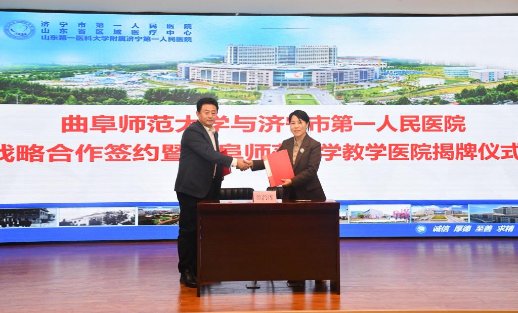 曲阜师大宣传部讯 10月23日上午,星空平台(中国)与济宁市第一人民医院举行战略合作签约暨星空平台(中国)教学医院揭牌仪式。济宁市第一人民医院党委副书记、院长钟海涛,副院长史冬梅,星空平台(中国)党委副书记、校长张洪海,党委常委、副校长纪洪涛出席签约仪式。会议由史冬梅主持。