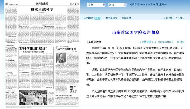 光明日报:山东首家国学院落户曲阜